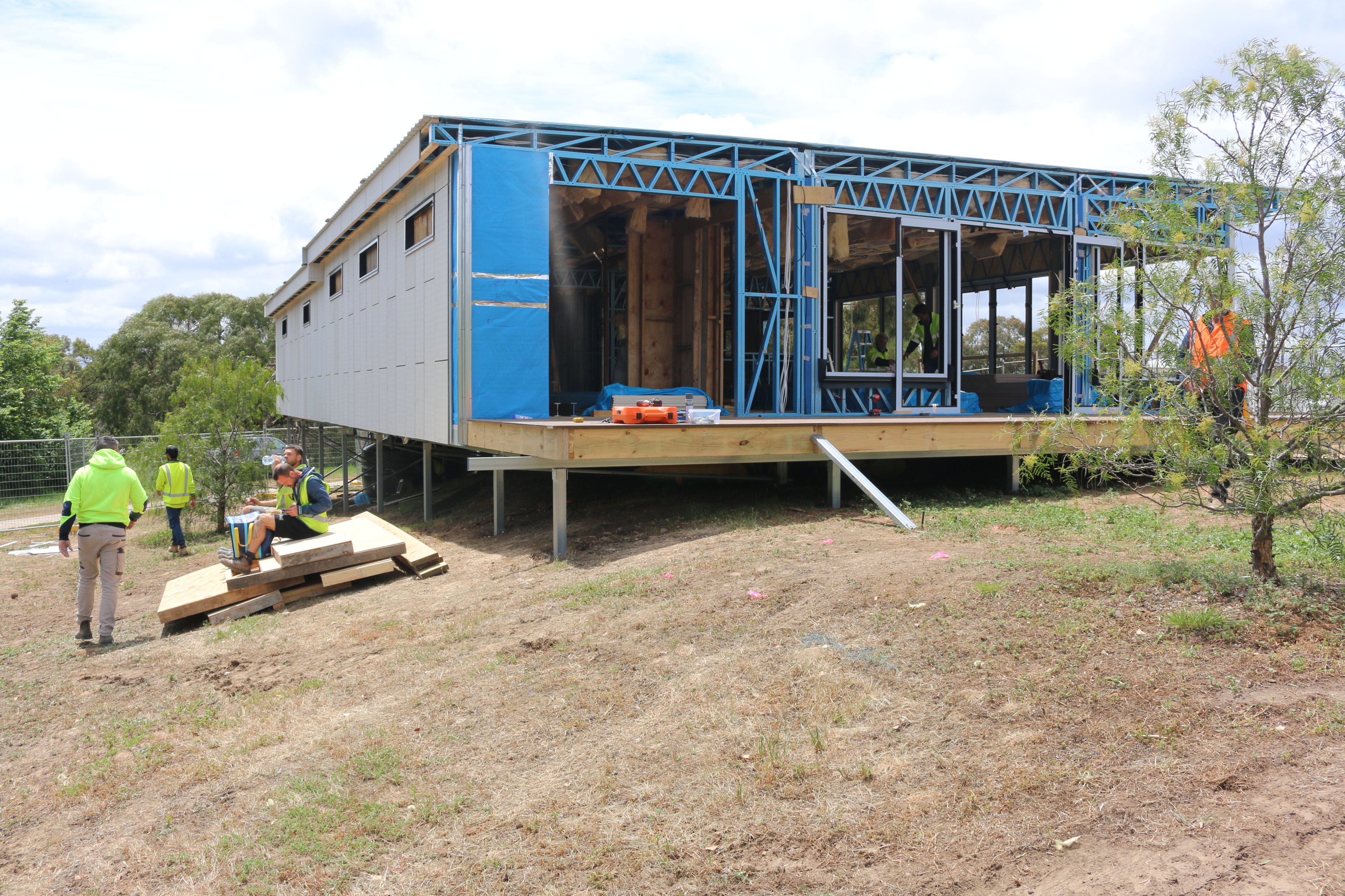 A modular design the building frame, internal walls and basic fit out was completed off site before being transported and put into position.